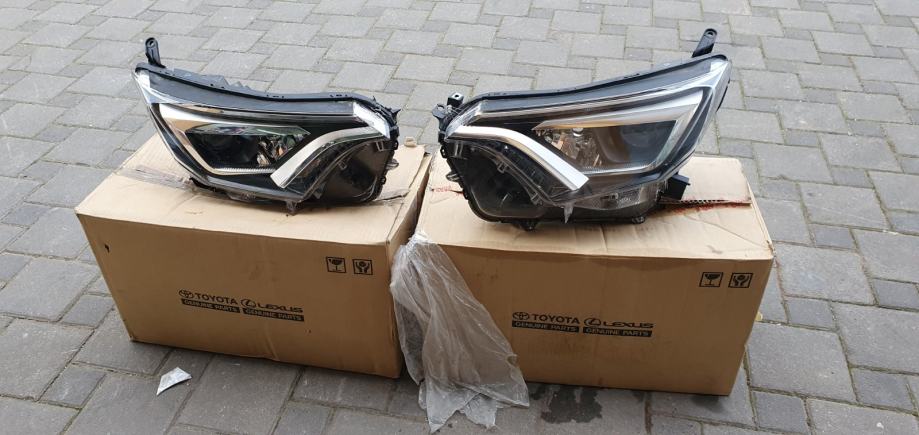 Prednji farovi za TOYOTU RAW 4 2018god, oe brojevi :81185-42680 I 81145-42680 , lijevi savršen bez oštečenja -1500kn, desni puknut nosač i kučište 500kn