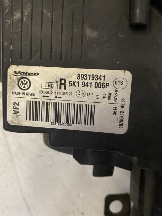 Desni far VW Golf VI 89319341 ima minimalna oštećenja, treba zaljepiti kopču.