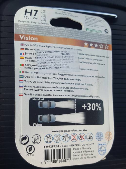 žarulja H7 vision...12v 55w...30% bolje osvjetljava ...novo ...neotvarano...krivo kupljeno...plačeno 68.94 kn...orginal...