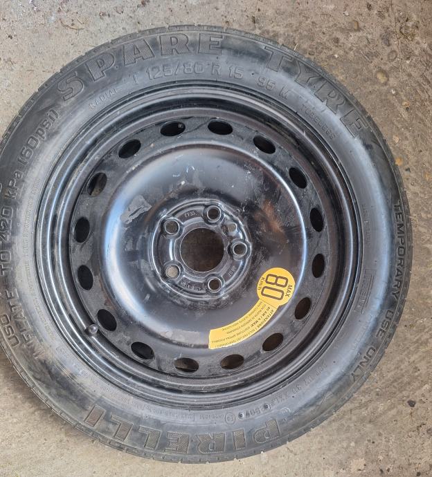 Čelična felga 15 5x98 sa gumama 1komad Rezervni kotač malih dimenzija Original Fiat Doblo. Opel Combo. Alfa Romeo 147. 155. 156. vozila itd. može proba, može slanje ostalo na slikama.... . ..Telefon. 092 322 1697....