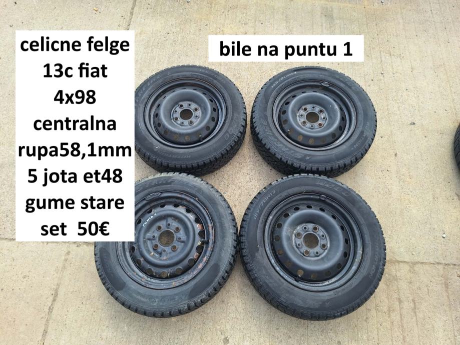prodajem celicne felge 13 coli bile na fiat puntu 1 razmak rupa 4x98 centralna rupa 58,1mm 5 jota et 48 felge dobre nisu udarane savijene gume stare cijena seta 50 eura fixno