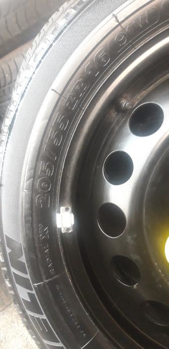 Čelična felga rezervna - pomočni kotač , 16" 5x100 , 6,5J ET 42 Wv, Audi, Seat, Škoda sa gumom 205 55 16 Michelin 1 kom 60 e !