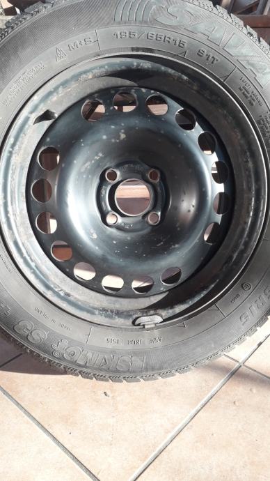 Čelične felge 61/2Jx15 ET-35 4 rupe sa zimskim gumama Sava Eskimo S3+ starosti 7 godina ripna 7,5 mm te ratkape. Korišteno na Opel Astri