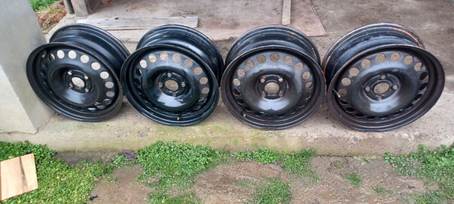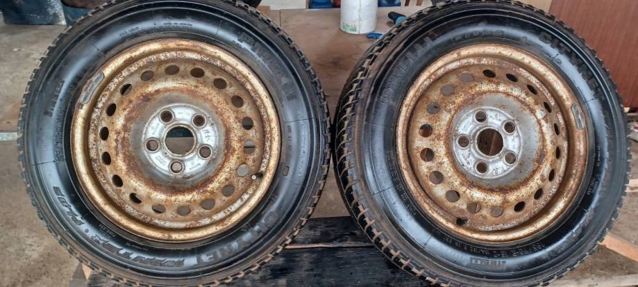 Čelične felge 15'' rupe 4x100, 4 kom., 2 felge i guma. 50 €.