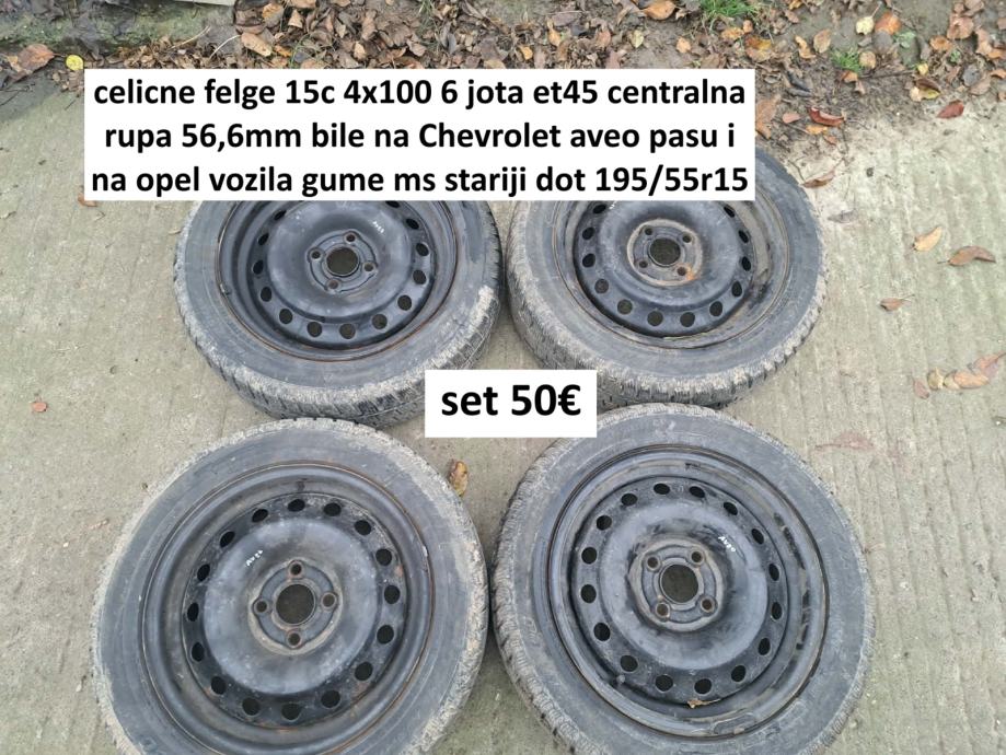 prodajem celicne felge 15 coli razmak rupa 4x100 centralna rupa 56.6mm 6 jota et45 bile na chevrolet aveo pasu i na opel vozila gume na njima stare ms 195/55 r15 cijena seta 50 eura fixno