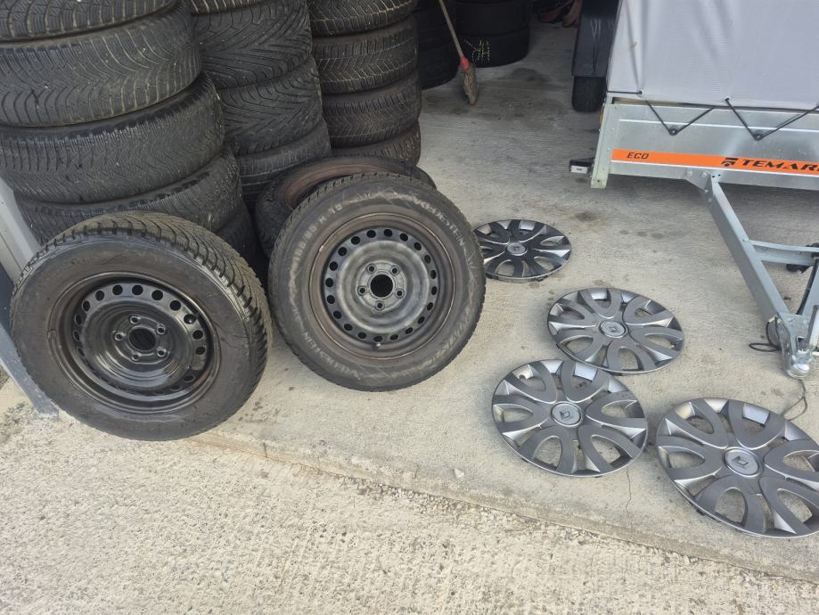 Čelične felge 15'' rupe 5x114.3,+zimske gume+ratkape komplet 200e