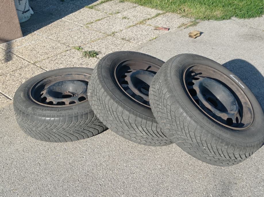 Prodajem 3 rabljene čelične felge 15" 4x108, ET27, 6 1/2 J s rabljenim gumama.