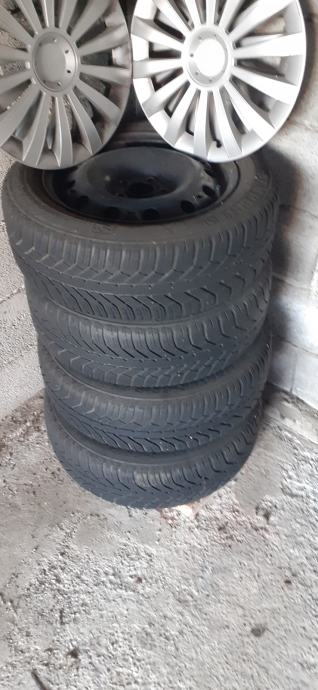 Čelične felge za škodu rapid komplet 4 kom.s zimskim gumama SEMPERIT 185×65×15 u dobrom stanju i ratkapama cijena 100€