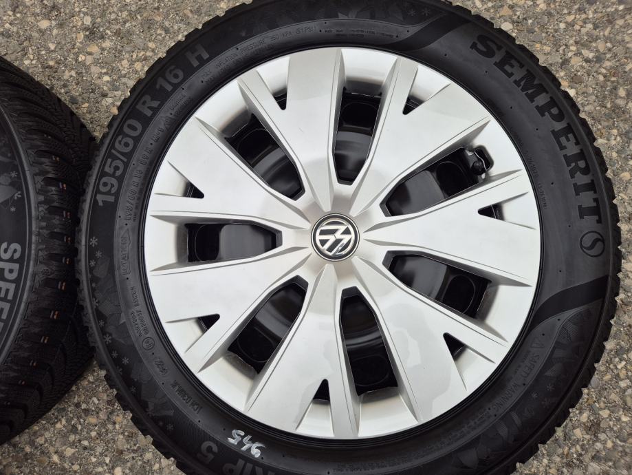 Celicne felge 16 5x100 VW T-Cross Polo sa zimskim gumama i ratkapama 195/60R16 89H Semperit Speed Grip 5 / na 2 prednje gume DOT3723 - 37 sedmica 2023 godine dubina sare na 2 prednje gume 8 mm, na 2 zadnje gume DOT0822 - 8 sedmica 2022 godine dubina sare na 2 zadnje gume 7 mm,