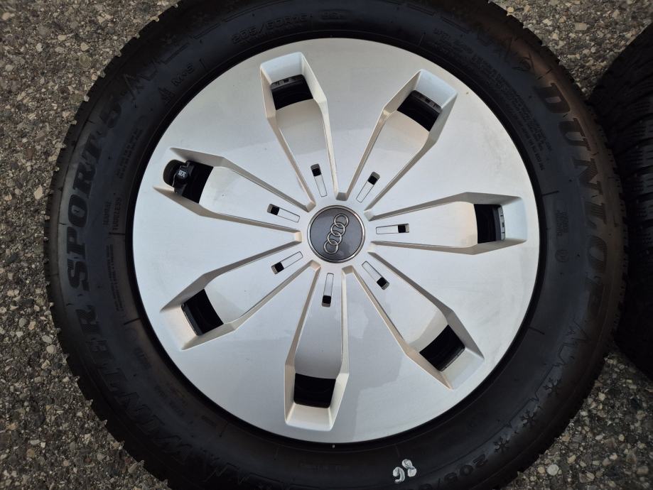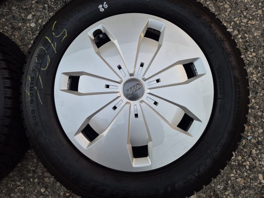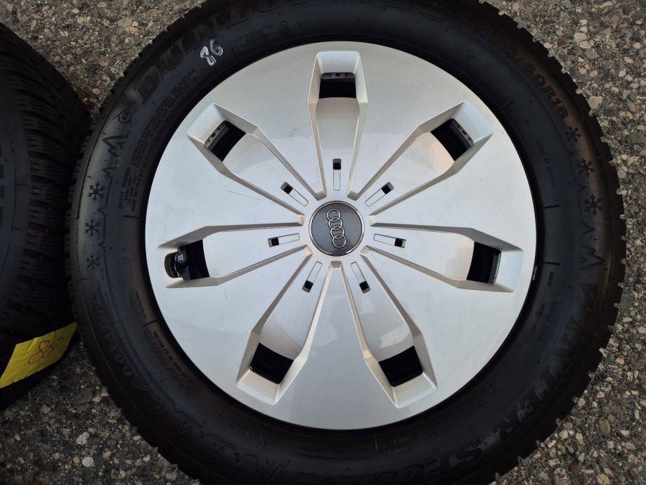 Celicne felge 16 5x112 Audi A3 8P 8V Q2 sa ratkapama i zimskim gumama 205/60R16 96H Dunlop Winter Sport 5 / na sve 4 gume DOT1122 - 11 sedmica 2022 godine, dubina sare na 2 prednje gume 9 mm, dubina sare na 2 zadnje gume 7.5 mm