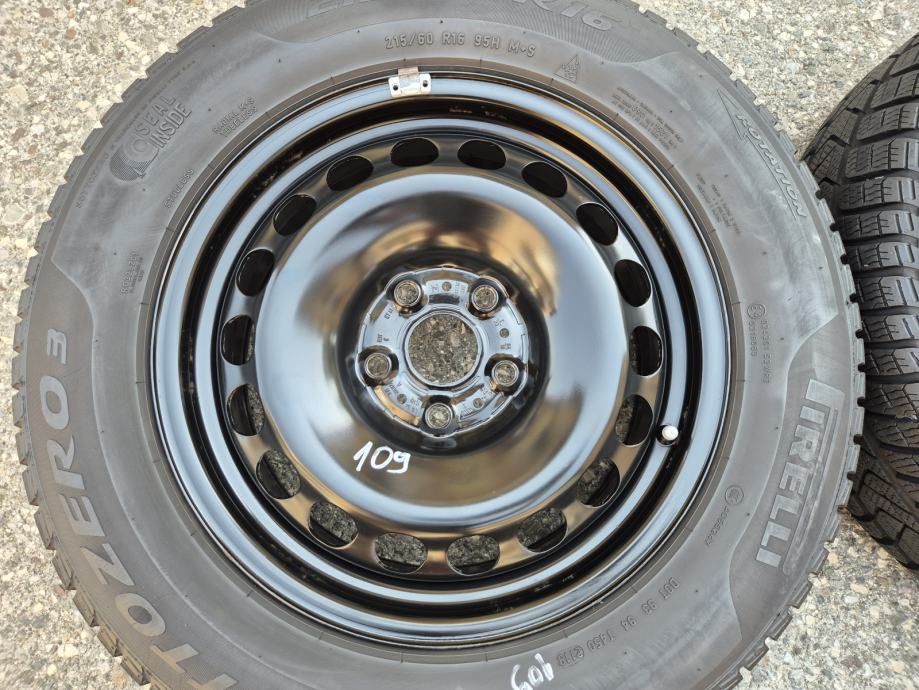 Celicne felge 16 5x112 Skoda Yeti Superb Karoq sa gumama 215/60R16 95H M+S Zimske Pirelli Sottozero Winter 3 / dubina sare na sve 4 gume 7 mm, na 2 prednje gume DOT0421 - 4 sedmica 2021 godine , na 2 zadnje gume DOT2119 - 21 sedmica 2019 godine