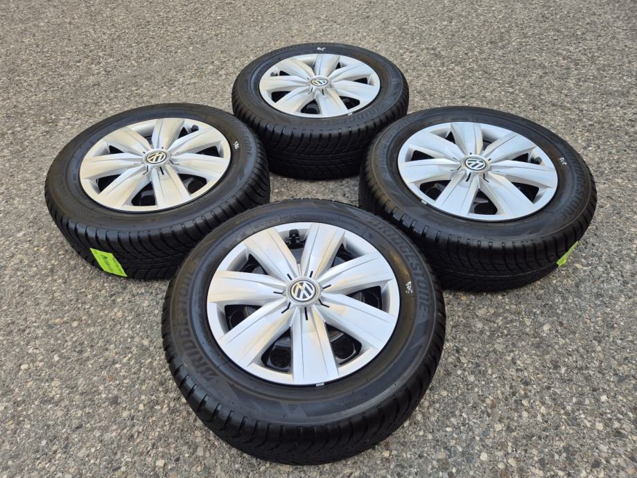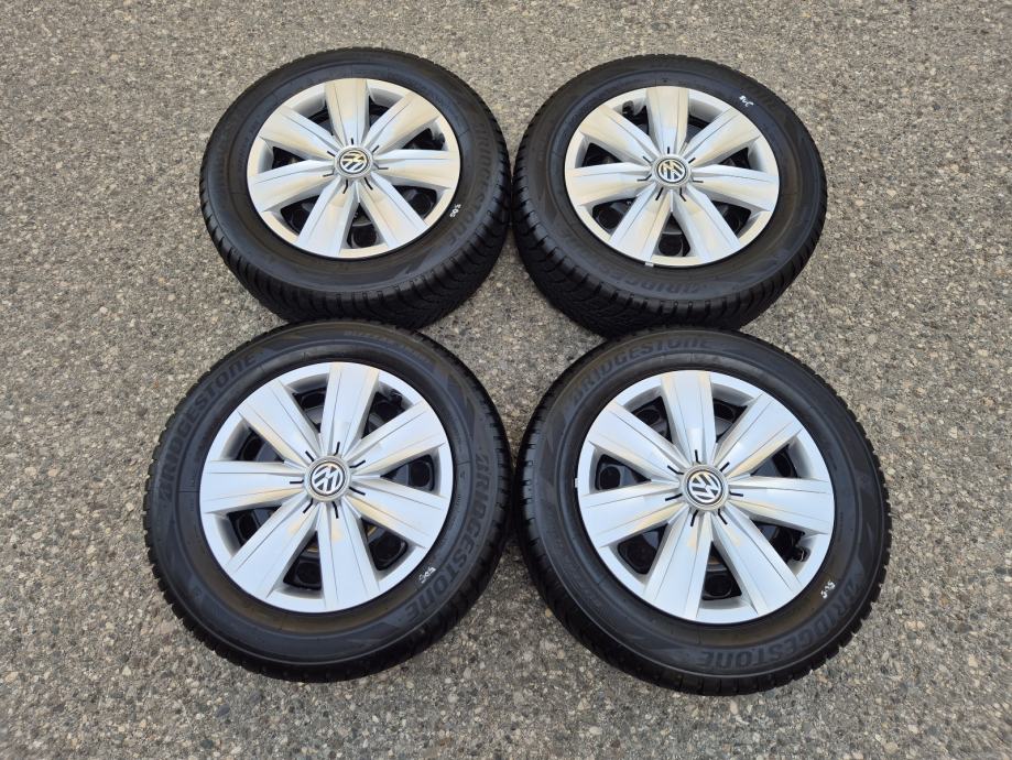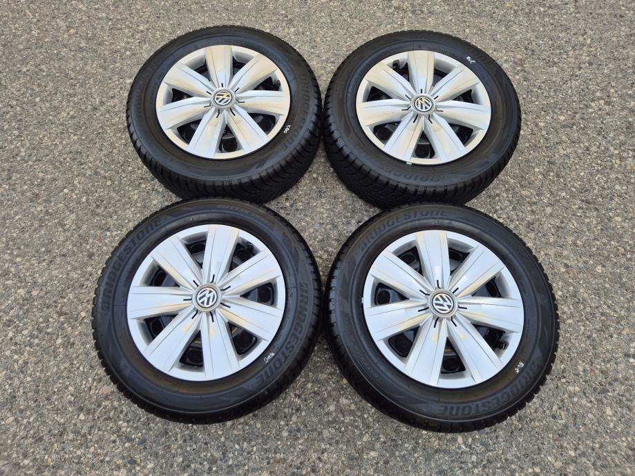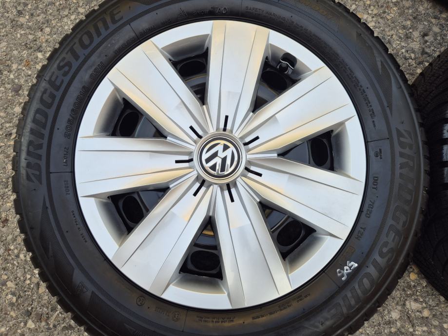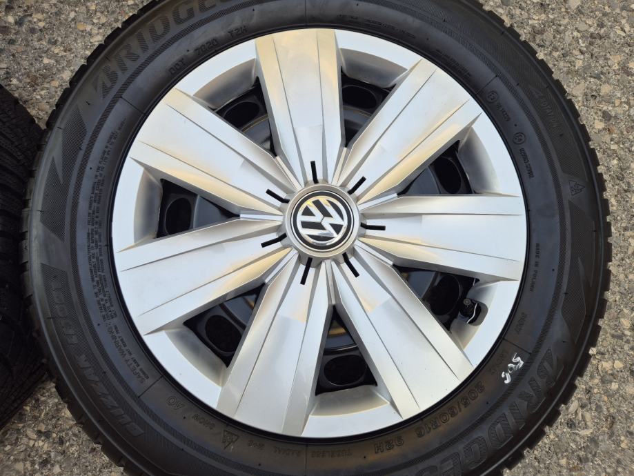 Celicne felge 16 5x112 VW T-Roc Caddy Touran Passat B6 B7 CC sa ratkapama i zimskim gumama 205/60R16 92H Bridgestone Blizzak LM001 / na sve 4 gume DOT2820 - 28 sedmica 2020 godine, dubina sare na 2 prednje gume 8 mm, dubina sare na 2 zadnje gume 7 mm