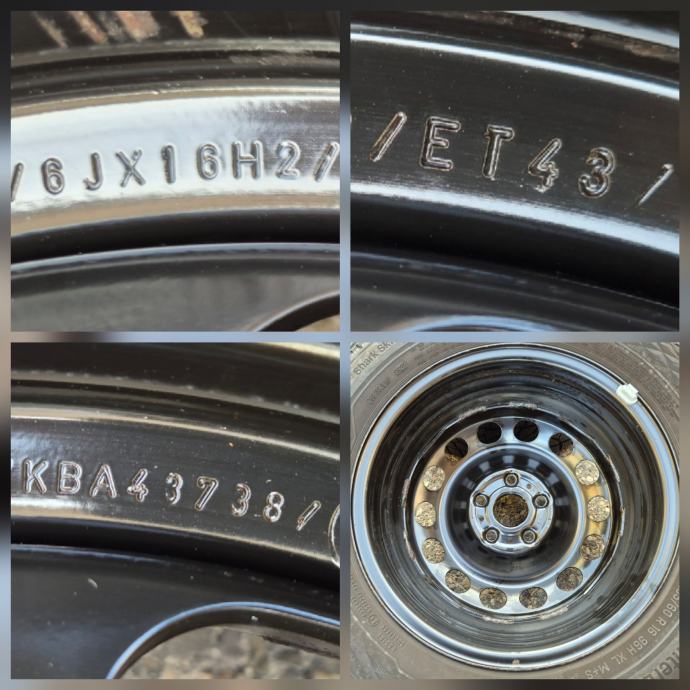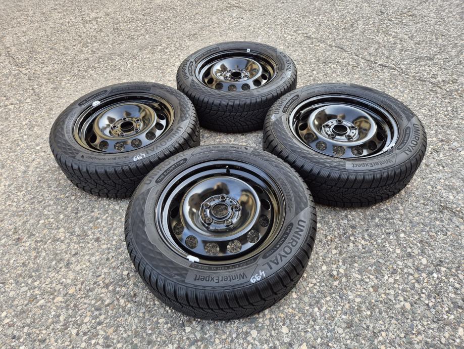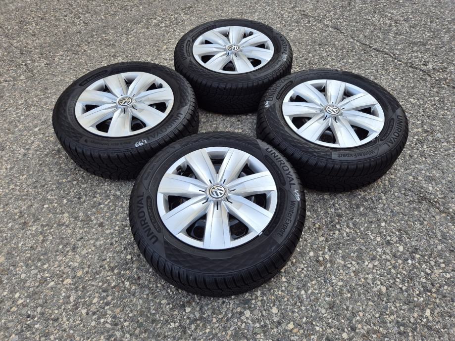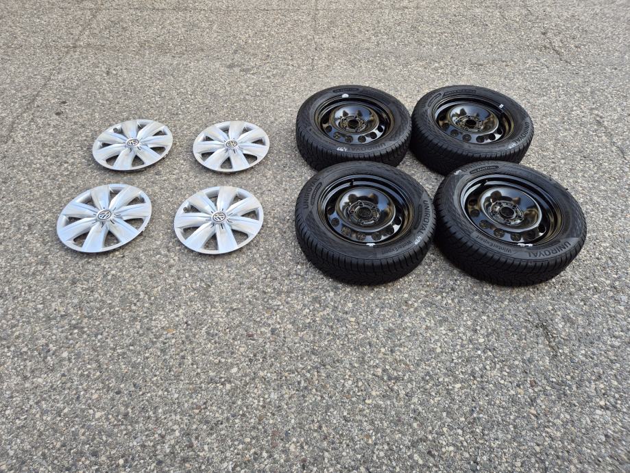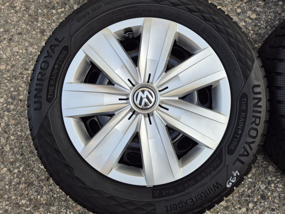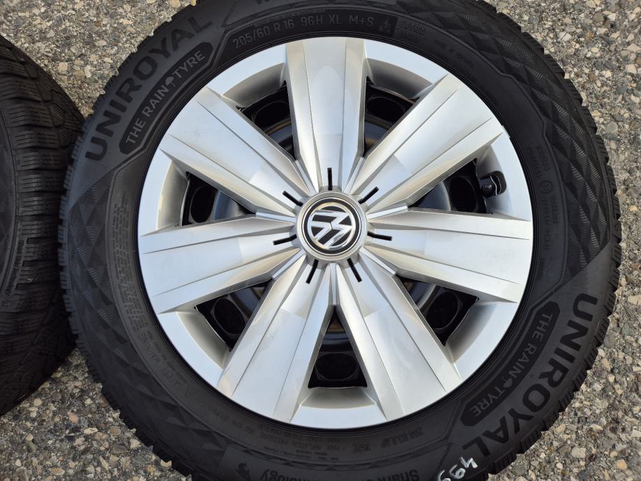 Celicne felge 16 5x112 VW T-Roc Caddy Touran Passat B6 B7 CC sa ratkapama i zimskim gumama 205/60R16 96H Uniroyal Winter Expert / DOT3522 - 35 sedmica 2022 godine / na 2 prednje gume dubina sare 8 mm, na 2 zadnje gume dubina sare 7 mm