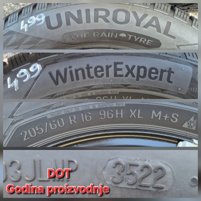 Na felgama imaju gume 205/60R16 96H M+S Zimske sve 4 Uniroyal Winter Expert