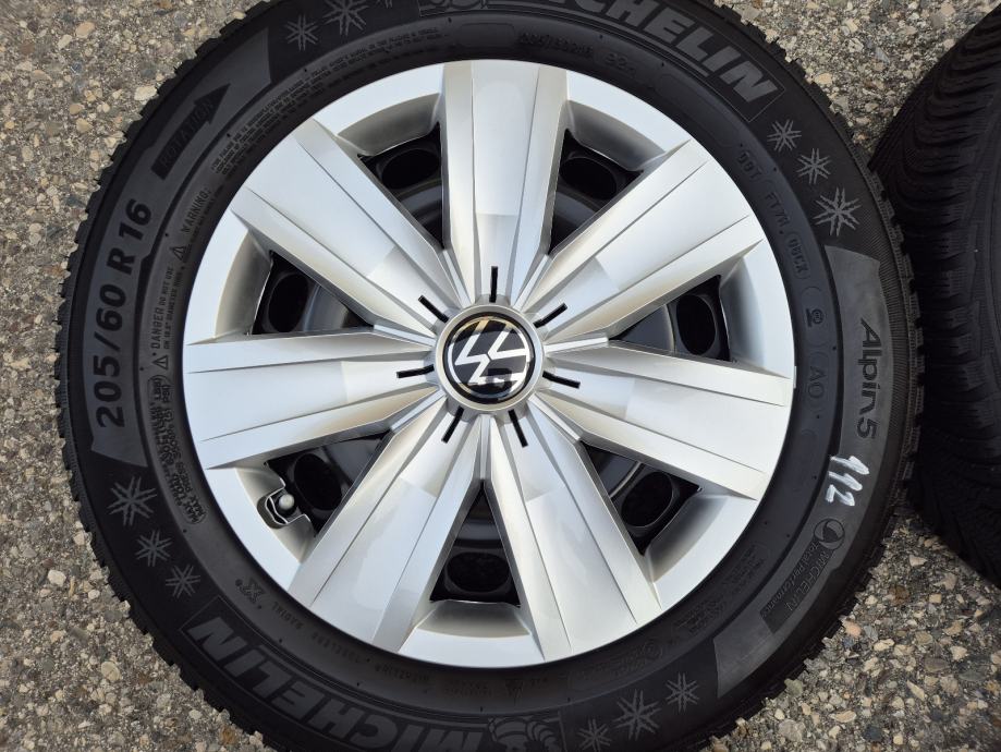 Celicne felge 16 5x112 VW T-Roc Caddy Touran Passat B6 B7 CC sa ratkapama i zimskim gumama 205/60R16 92H Michelin Alpin A5 / DOT3721 - 37 sedmica 2021 godine / na 2 prednje gume dubina sare 8 mm, na 2 zadnje gume dubina sare 7 mm