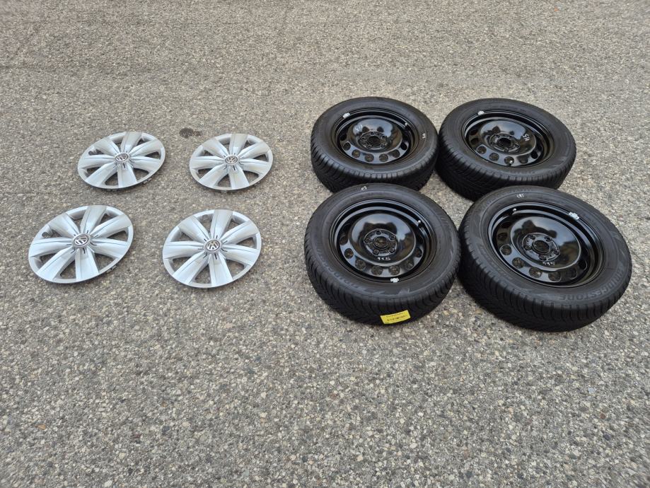 Celicne felge 16 5x112 VW T-Roc Caddy Touran Passat B6 B7 CC sa ratkapama i zimskim gumama 205/60R16 92H Bridgestone Blizzak LM001 dubina sare na 2 prednje gume 7.5 mm, dubina sare na 2 zadnje gume 6 mm DOT2319 - 23 sedmica 2019 godine