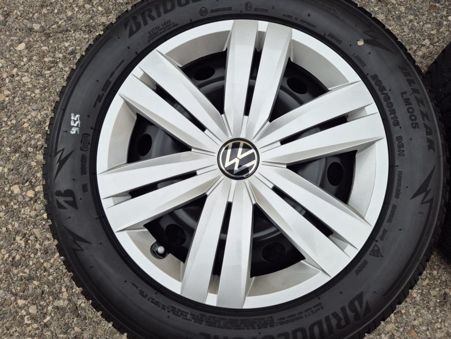 Celicne felge 16 5x112 VW T-Roc Caddy Touran Passat B6 B7 sa ratkapama i zimskim gumama 205/60R16 96H Bridgestone Blizzak LM005 dubina sare na 2 prednje gume 8 mm, dubina sare na 2 zadnje gume 7 mm DOT3221 / 32 sedmica 2021 godine