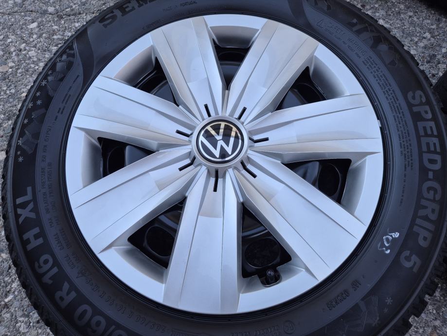 Celicne felge 16 5x112 VW T-Roc Touran Passat B6 B7 CC Caddy sa ratkapama i zimskim gumama 205/60R16 96H Semperit Speed Grip 5 / na 2 prednje gume DOT4223 - 42 sedmica 2023 godine dubina sare 8 mm , na 2 zadnje gume DOT2821 - 28 sedmica 2021 godine dubina sare 7 mm