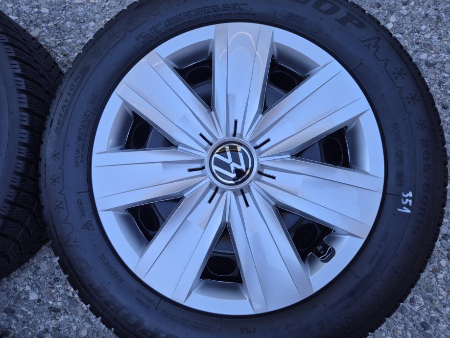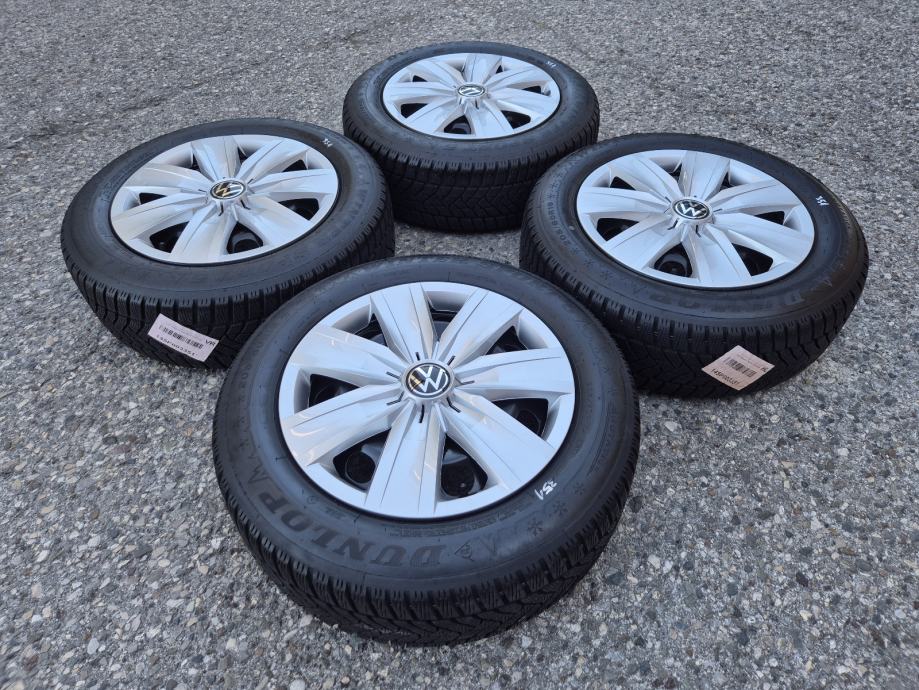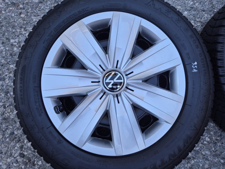 Celicne felge 16 5x112 VW T-Roc Touran Passat B6 B7 CC Caddy sa ratkapama i zimskim gumama 205/60R16 96H Dunlop Winter Sport 5 / na sve 4 gume DOT3520 - 35 sedmica 2020 godine, dubina sare na 2 prednje gume 8 mm, dubina sare na 2 zadnje gume 6 mm