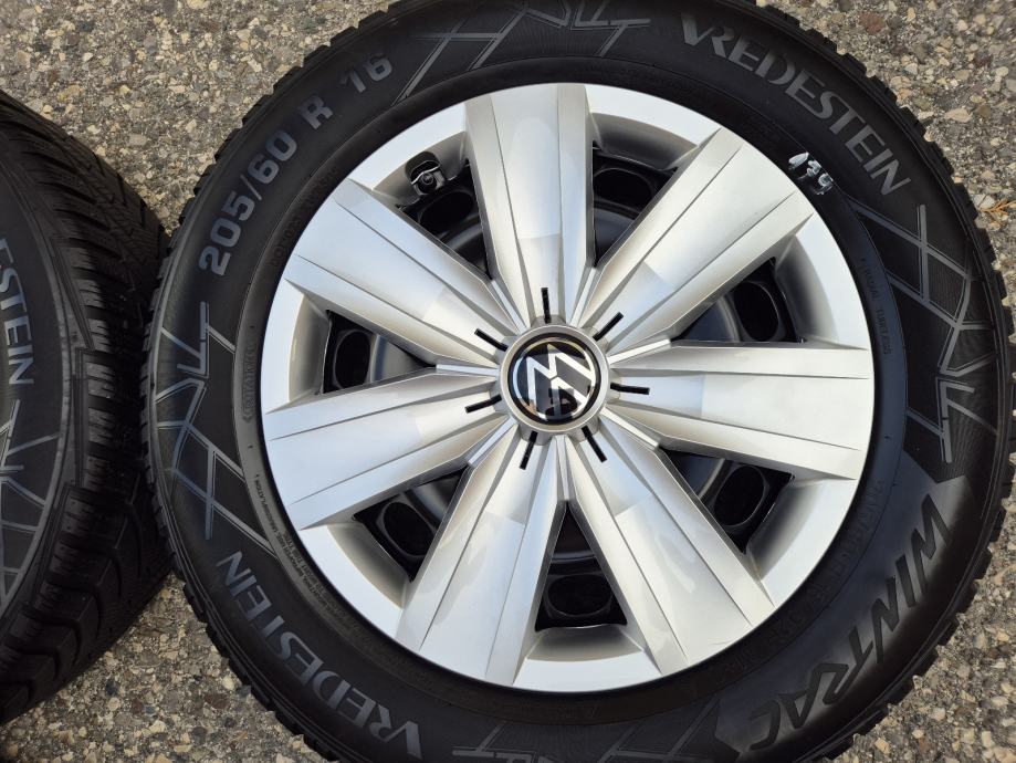 Celicne felge 16 5x112 VW T-Roc Touran Passat B6 B7 CC Caddy sa ratkapama i zimskim gumama 205/60R16 92H Vredestein Wintrac / na sve 4 gume DOT3721 - 37 sedmica 2021 godine, dubina sare na 2 prednje gume 7 mm, dubina sare na 2 zadnje gume 6.5 mm