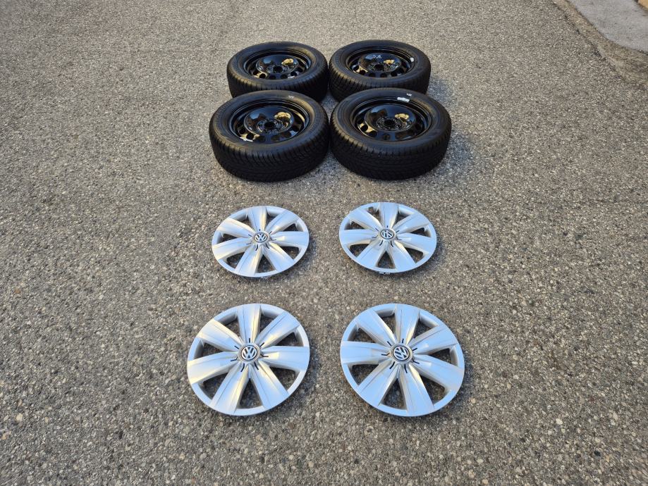 Celicne felge 16 5x112 VW T-Roc Touran Passat B6 B7 CC Caddy sa ratkapama i zimskim gumama 205/60R16 92H Bridgestone Blizzak LM001 / na sve 4 gume DOT2820 - 28 sedmica 2020 godine, dubina sare na 2 prednje gume 8 mm, dubina sare na 2 zadnje gume 7 mm
