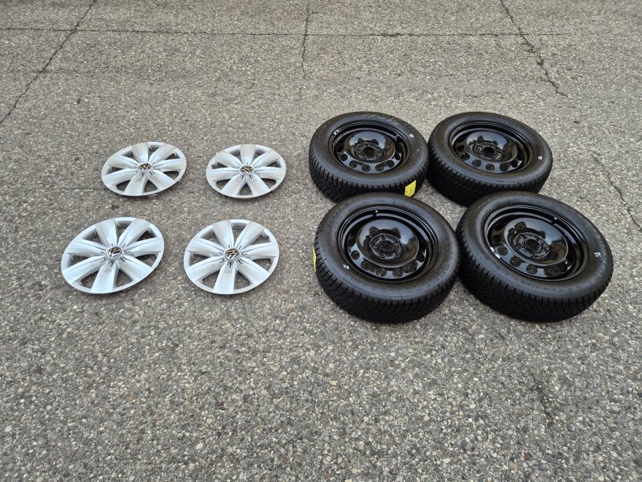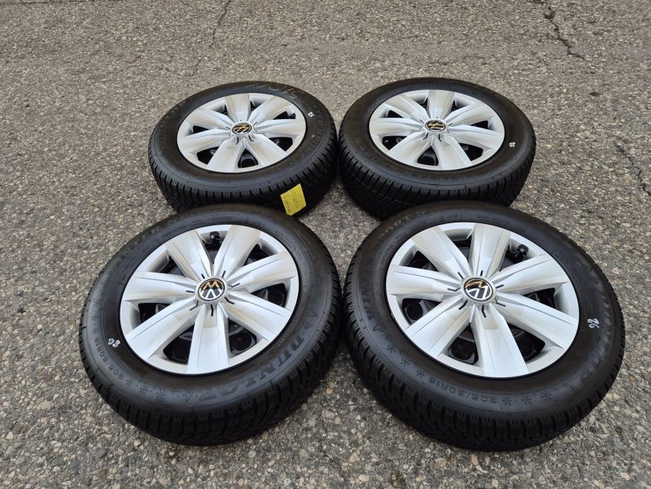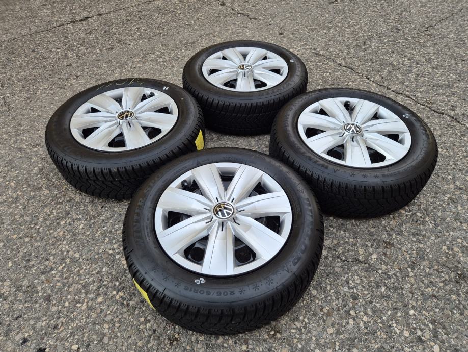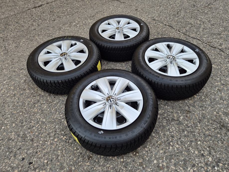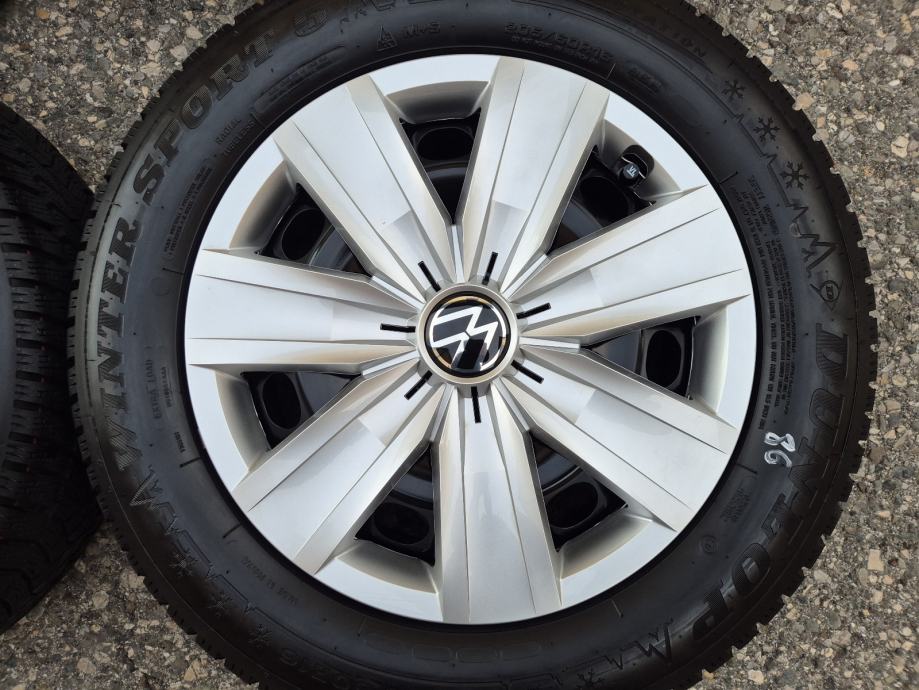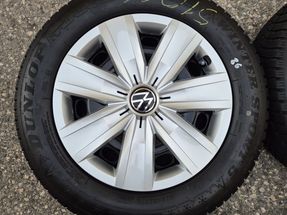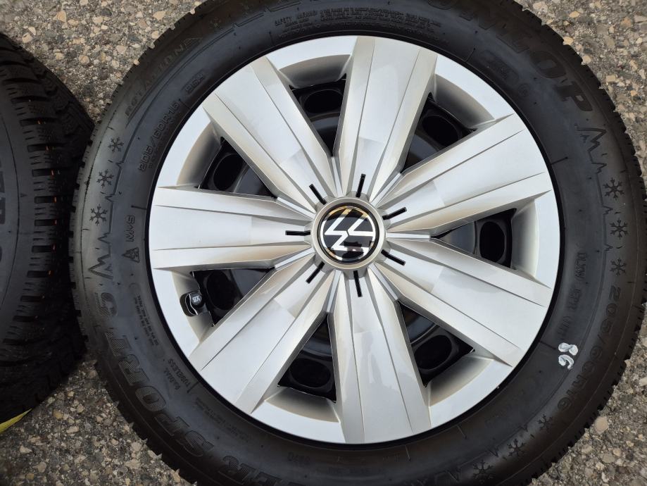 Celicne felge 16 5x112 VW T-Roc Touran Passat B6 B7 CC Caddy sa ratkapama i zimskim gumama 205/60R16 96H Dunlop Winter Sport 5 / na sve 4 gume DOT1122 - 11 sedmica 2022 godine, dubina sare na 2 prednje gume 9 mm, dubina sare na 2 zadnje gume 7.5 mm