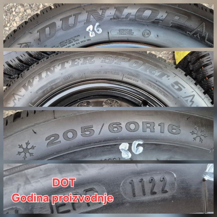 Na felgama imaju gume 205/60R16 96H M+S Zimske sve 4 Dunlop Winter Sport 5