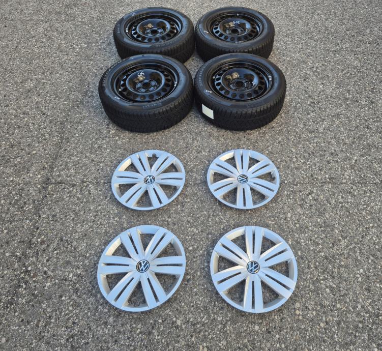 Celicne felge 16 5x112 VW Touran Passat CC B6 B7 Caddy sa zimskim gumama i ratkapama 205/60R16 96H Pirelli Sottozero 3 / dubina sare na sve 4 gume 6 mm, DOT2118 21 sedmica 2018 godine