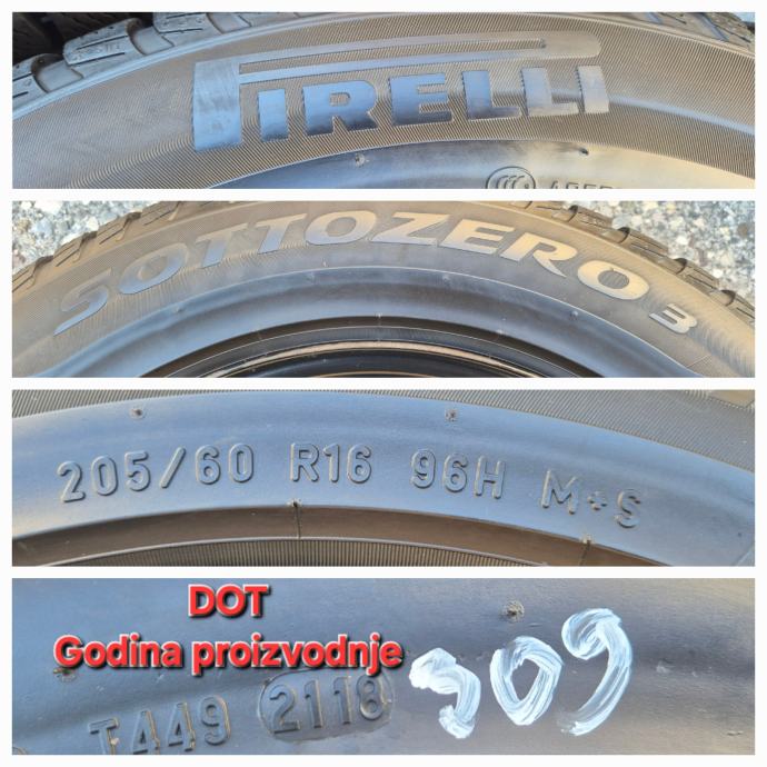 Na felgama imaju zismke gume 205/60R16 96H Pirelli Sottozero 3