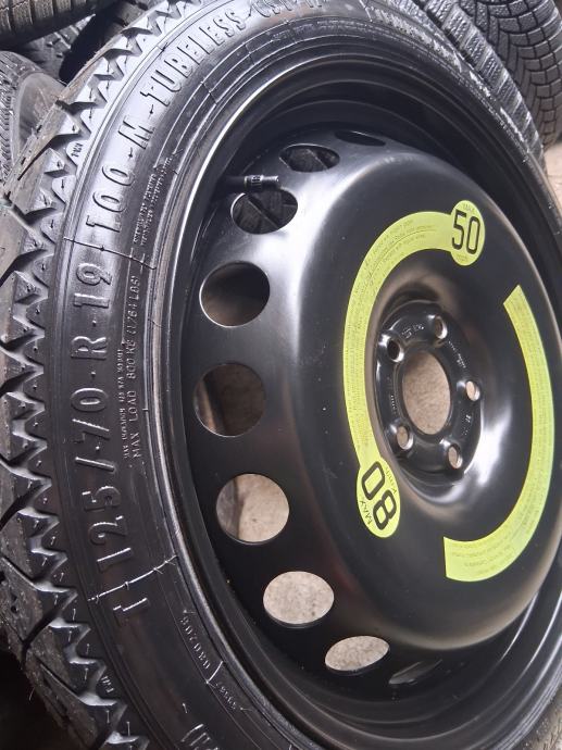 Rezervni - pomočni uski kotač A 4, A 5, A 6, b 8 , 19" 5x112 , 2008. - 2022. God. centralna rupa - fi 66,6, sa gumom Continental 125 70 19, montirana - balansirana, 250 eu