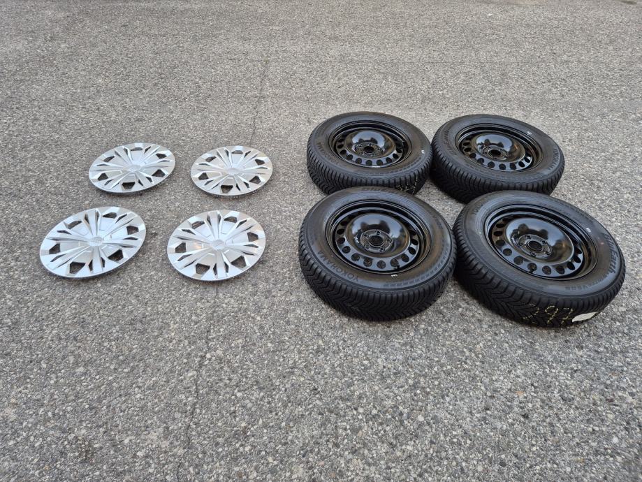 Celicne felge 17 5x112 Skoda Kodiaq sa ratkapama i zimskim gumama 215/65R17 99V Yokohama BluEarth Winter V905 / DOT2922 - 29 sedmica 2022 godine - GODINA PROIZVODNJE / na 2 prednje gume dubina sare 8 mm, na 2 zadnje gume dubina sare 7mm