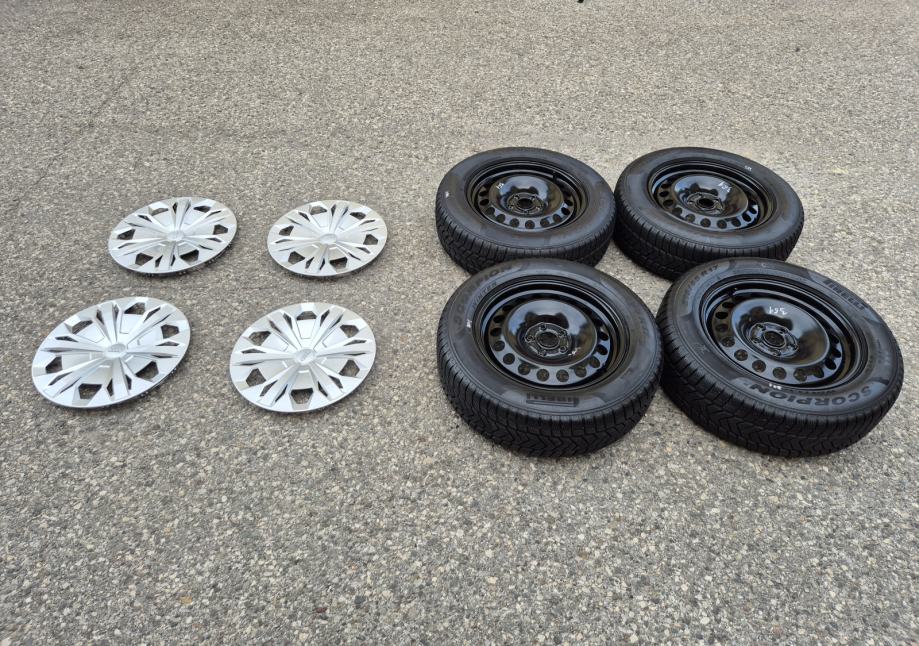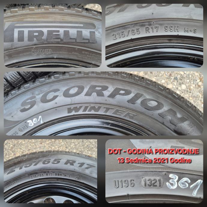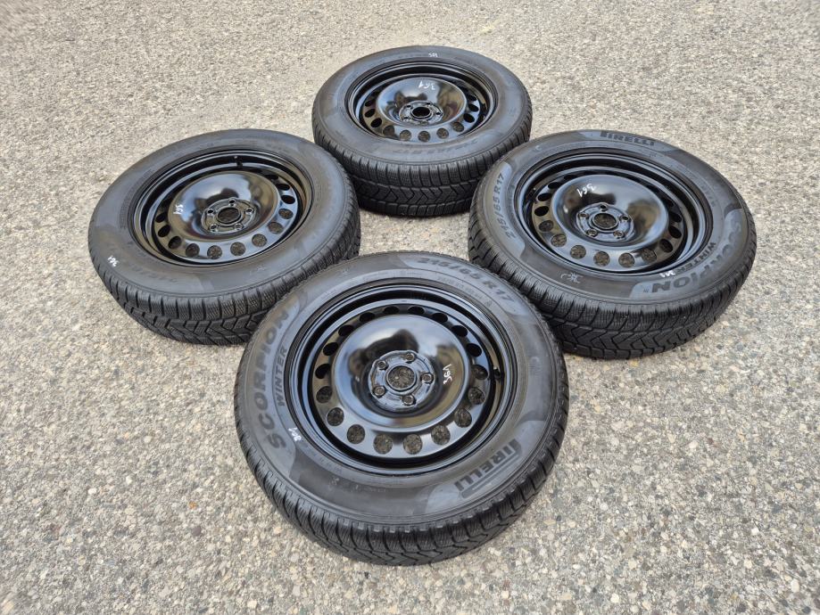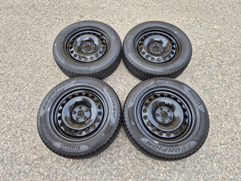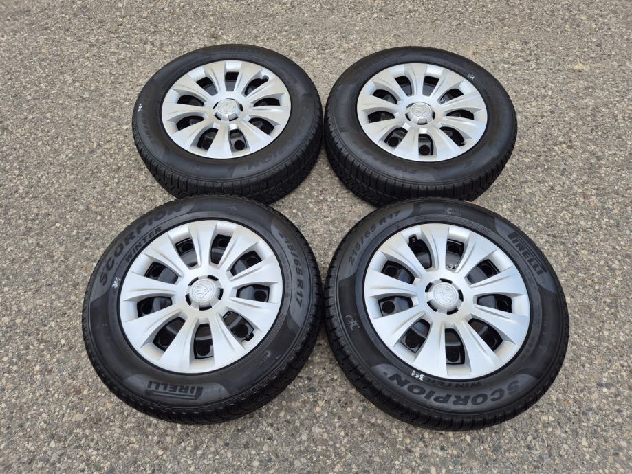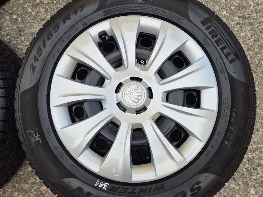 Celicne felge 17 5x112 Skoda Kodiaq sa ratkapama i zimskim gumama 215/65R17 99H Pirelli Scorpion Winter / DOT1321 - 13 sedmica 2021 godine / na 2 prednje gume dubina sare 7 mm, na 2 zadnje gume dubina sare 6.5 mm
