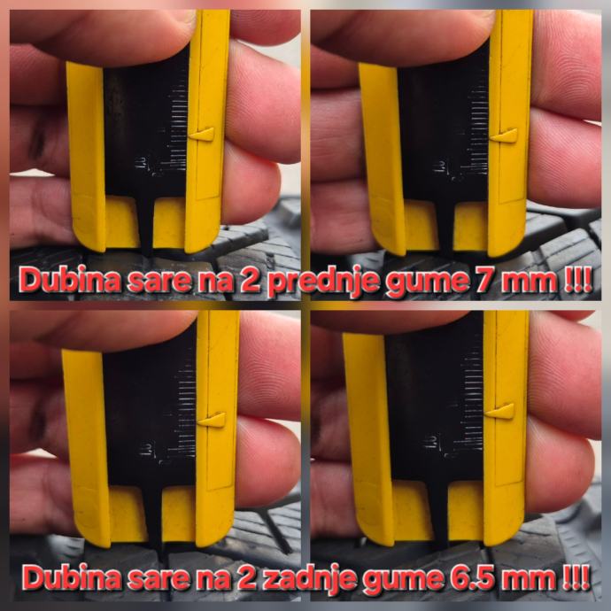 - Na 2 prednje gume dubina sare 7 mm