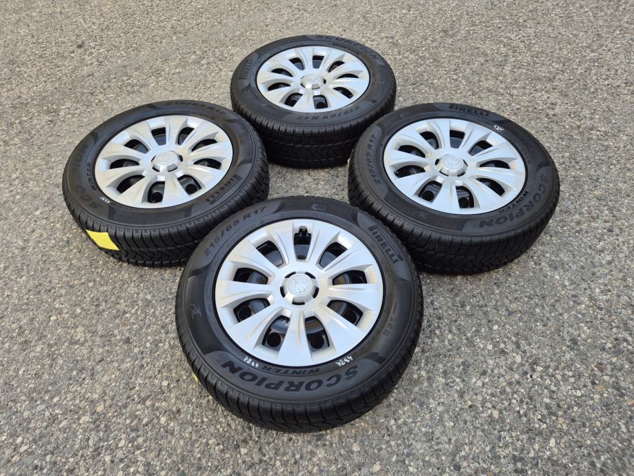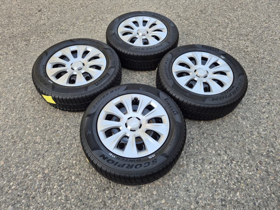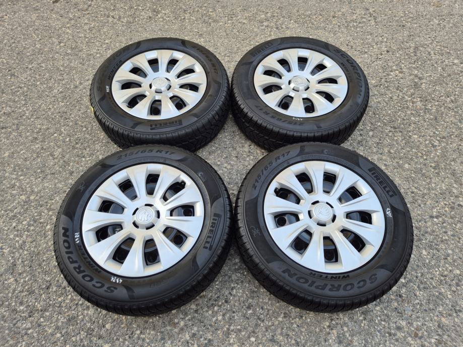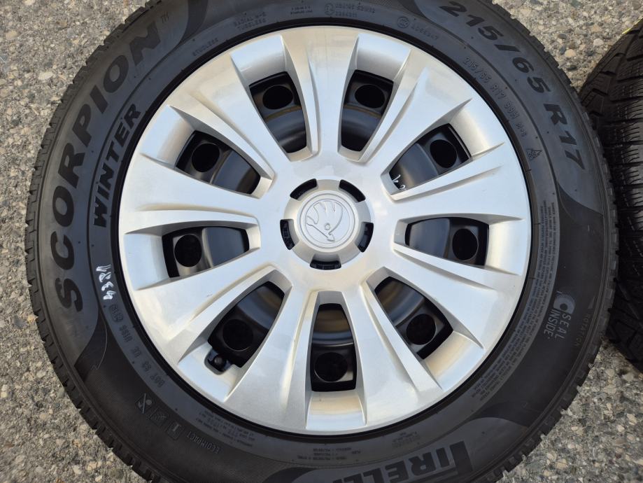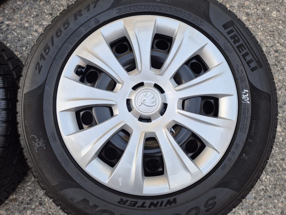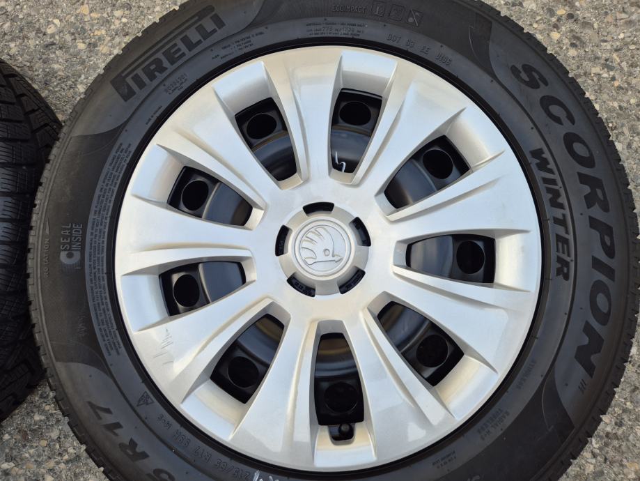 Celicne felge 17 5x112 Skoda Kodiaq sa ratkapama i zimskim gumama 215/65R17 99H Pirelli Scorpion Winter / na 2 prednje gume dubina sare 7 mm DOT2119 - 21 sedmica 2019 godine / na 2 zadnje gume dubina sare 6 mm DOT4218 - 42 sedmica 2018 godine