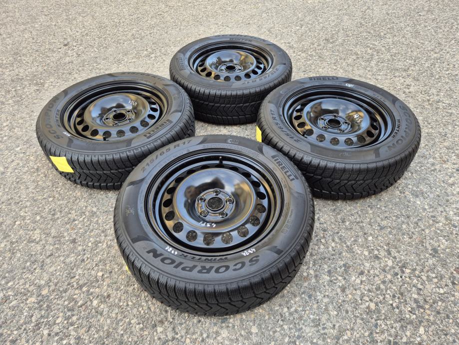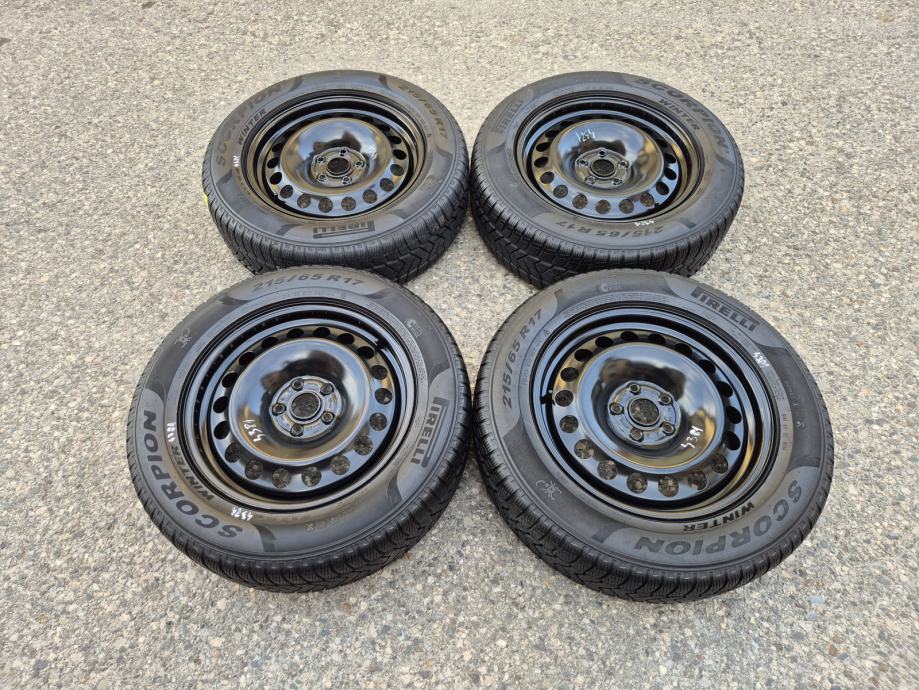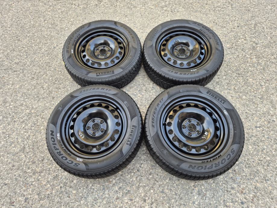 Celicne felge 17 5x112 Audi Q3 sa ratkapama i zimskim gumama 215/65R17 99H Pirelli Scorpion Winter / na 2 prednje gume dubina sare 7 mm DOT2119 - 21 sedmica 2019 godine / na 2 zadnje gume dubina sare 6 mm DOT4218 - 42 sedmica 2018 godine
