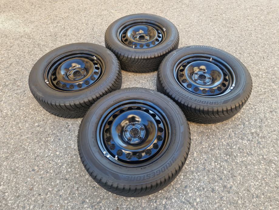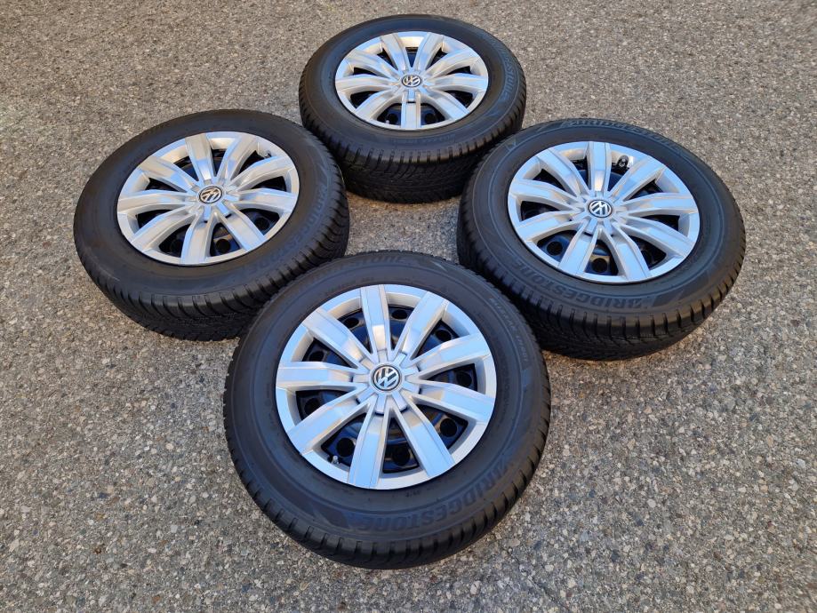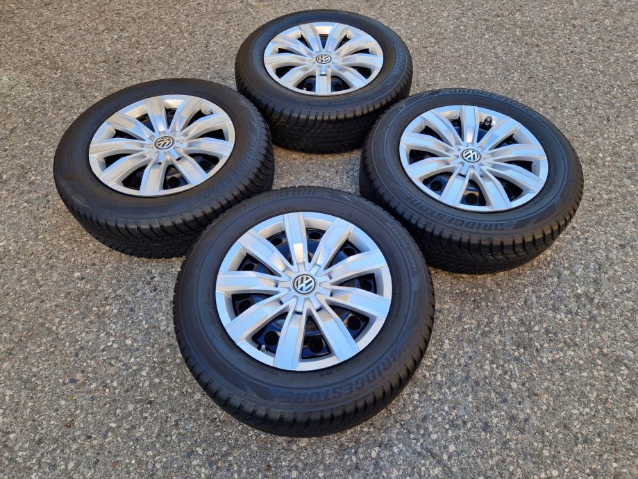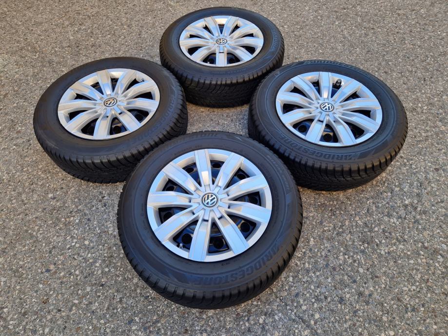Celicne felge 17 5x112 VW Tiguan sa ratkapama i zimskim gumama 215/65R17 99H Bridgestone Blizzak LM001 dubina sare na 2 prednje gume 7 mm, na 2 zadnje gume 6 mm / DOT3519 / 35 sedmica 2019 godine