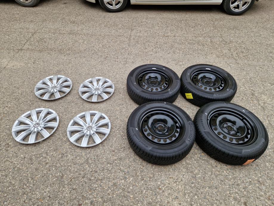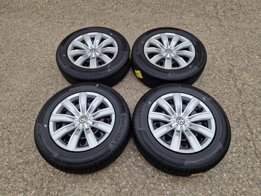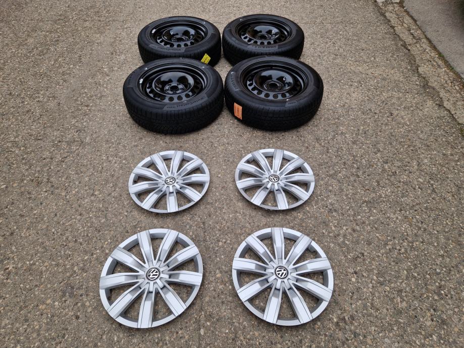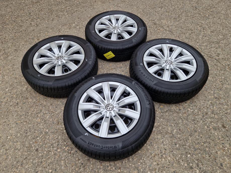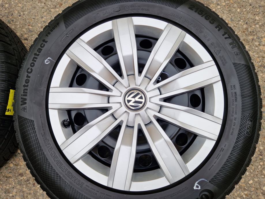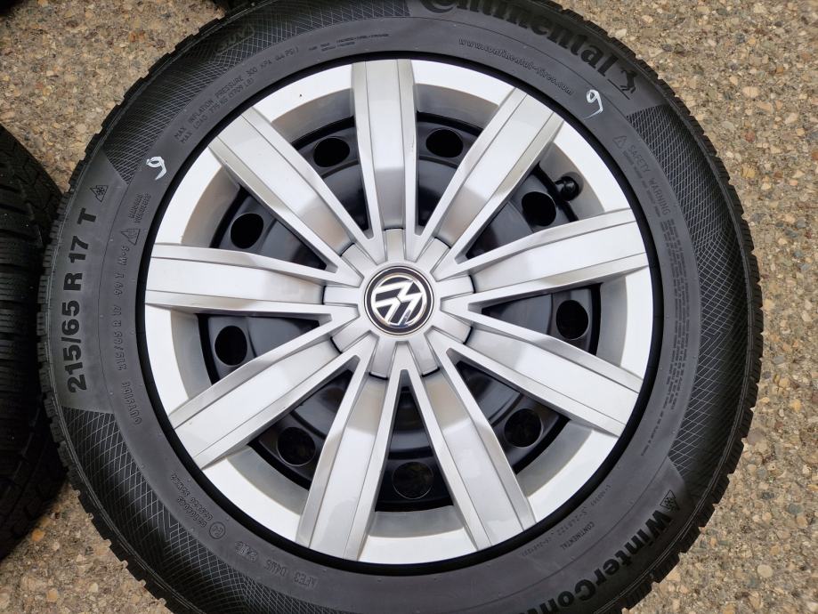 Celicne felge 17 5x112 VW Tiguan sa ratkapama i zimskim gumama 215/65R17 99T Continental ContiWinterContact TS850P dubina sare na 2 prednje gume 7.5 mm, na 2 zadnje gume 5.5 mm / DOT2418 / 24 sedmica 2018 godine