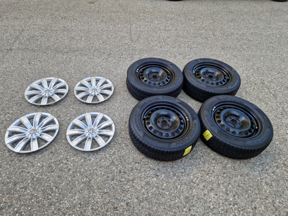 Celicne felge 17 5x112 VW Tiguan sa ratkapama i zimskim gumama 215/65R17 99H Pirelli Scorpion Winter dubina sare na 2 prednje gume 8 mm, na 2 zadnje gume 6 mm / DOT2620 / 26 sedmica 2020 godine