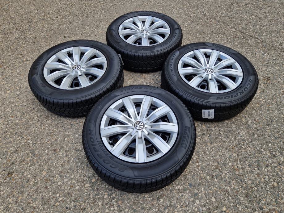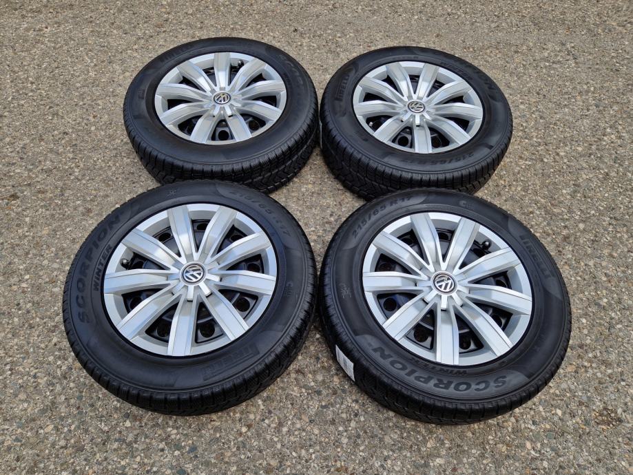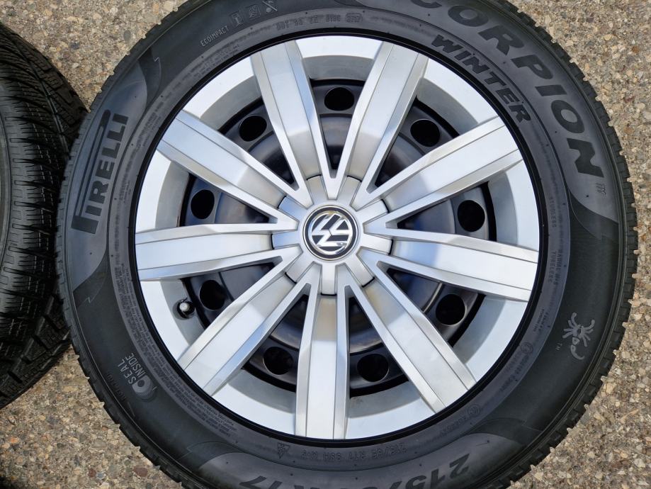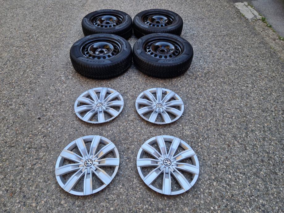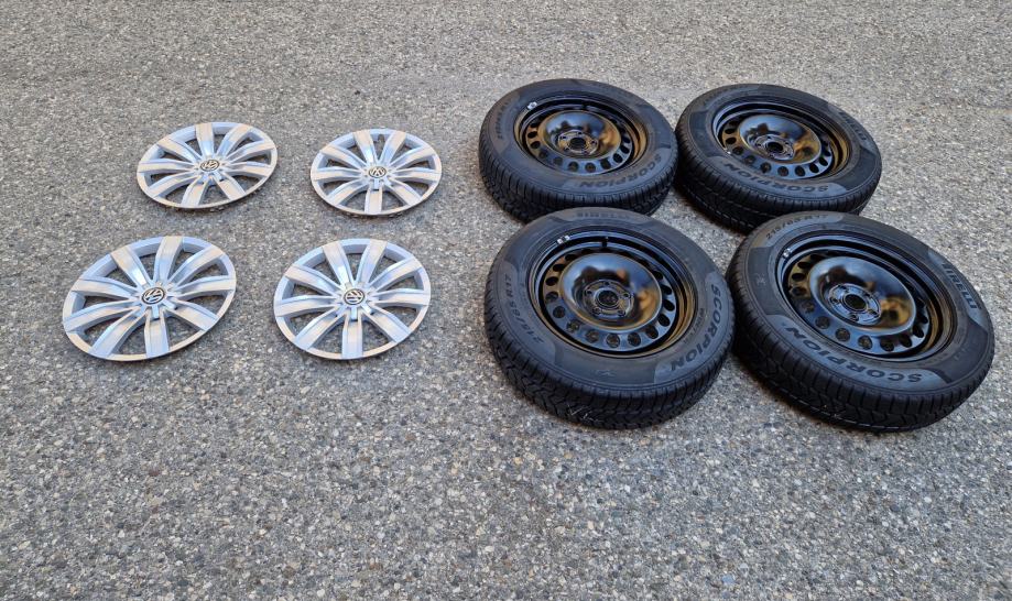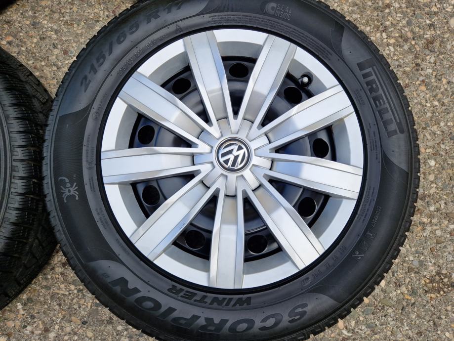 Celicne felge 17 5x112 VW Tiguan sa ratkapama i zimskim gumama 215/65R17 99H Pirelli Scorpion Winter dubina sare na sve 4 gume 7 mm / DOT3717 / 37 sedmica 2017 godine