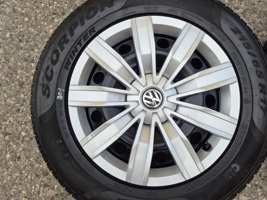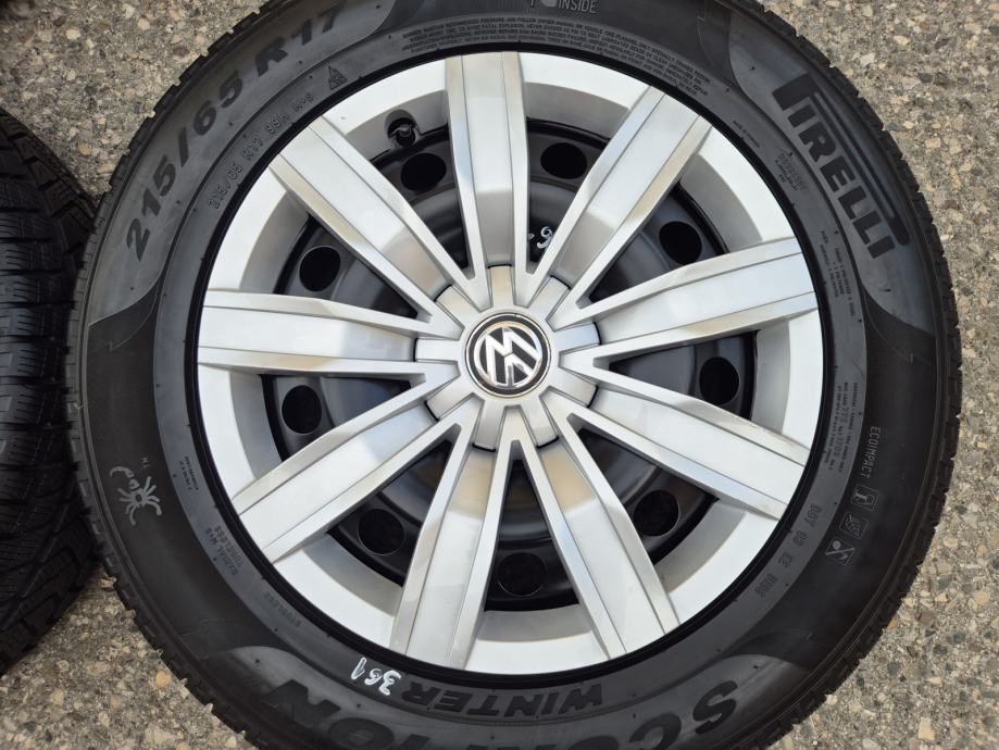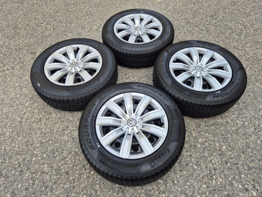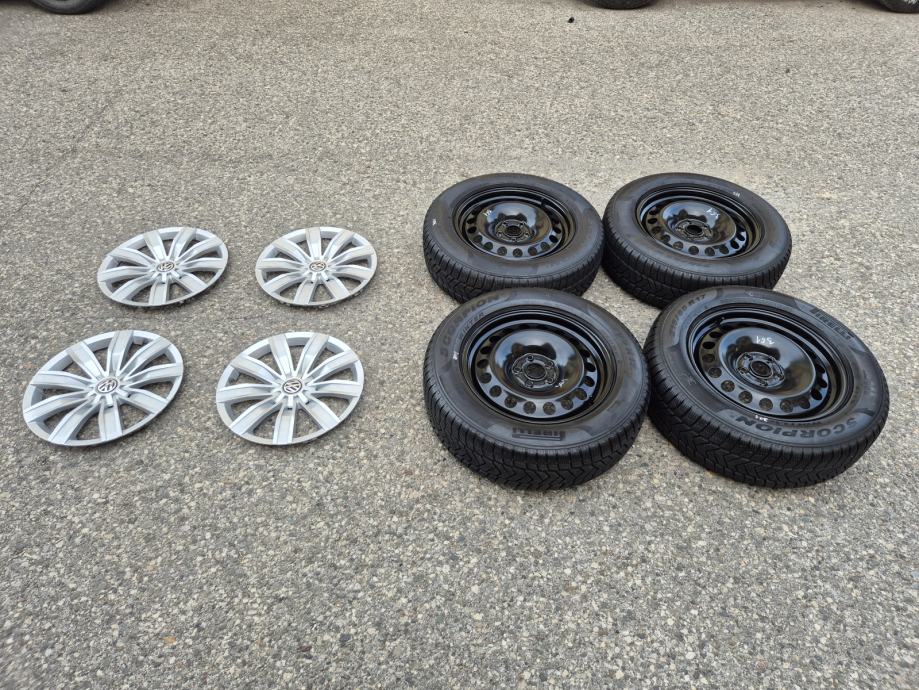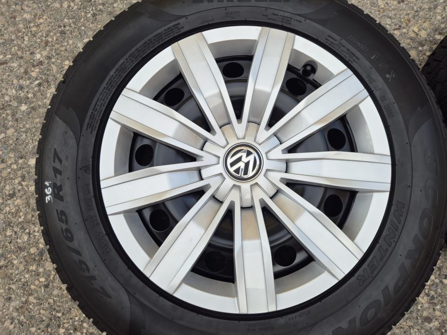 Celicne felge 17 5x112 VW Tiguan sa ratkapama i zimskim gumama 215/65R17 99H Pirelli Scorpion Winter / DOT1321 - 13 sedmica 2021 godine / na 2 prednje gume dubina sare 7 mm, na 2 zadnje gume dubina sare 6.5 mm