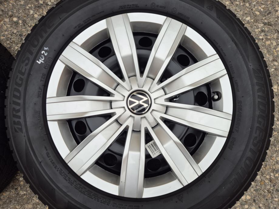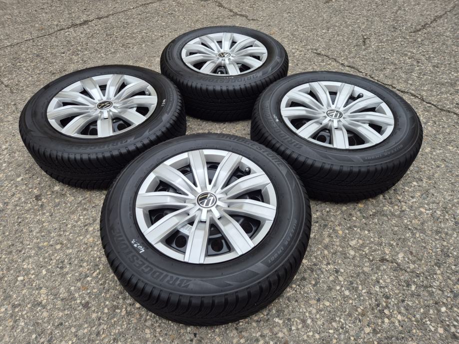 Celicne felge 17 5x112 VW Tiguan sa ratkapama i zimskim gumama 215/65R17 99H Bridgestone Blizzak LM001 dubina sare na 2 prednje gume 7 mm, na 2 zadnje gume 6 mm / DOT0319 - 3 sedmica 2019 godine
