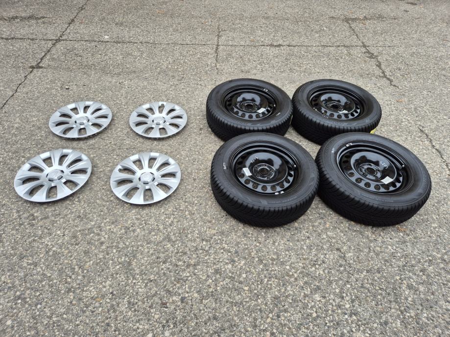 Celicne felge 17 5x112 Skoda Kodiaq sa ratkapama i zimskim gumama 215/65R17 99H Bridgestone Blizzak LM001 dubina sare na 2 prednje gume 7 mm, na 2 zadnje gume 6 mm / DOT0319 - 3 sedmica 2019 godine
