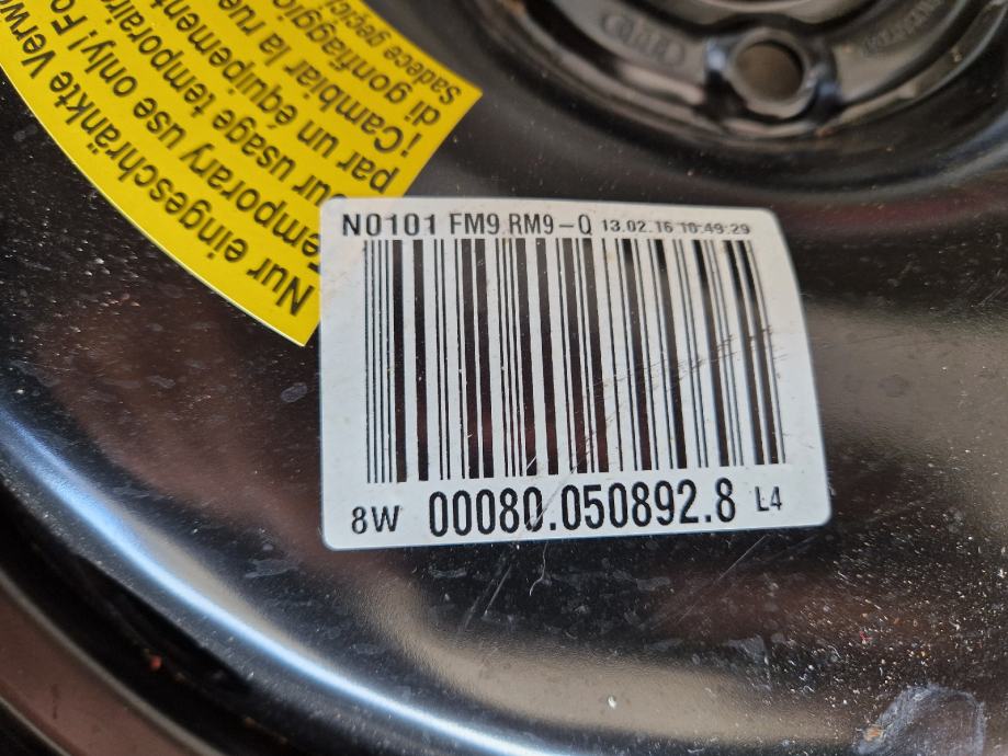 Mali (uski) rezervni kotač za audi 5x112 125/70 R19.