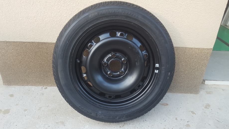 prodajem rezervni kotac dimenzije 15", raspon rupa 5x100, s Bridgestone gumom 195/55/15.