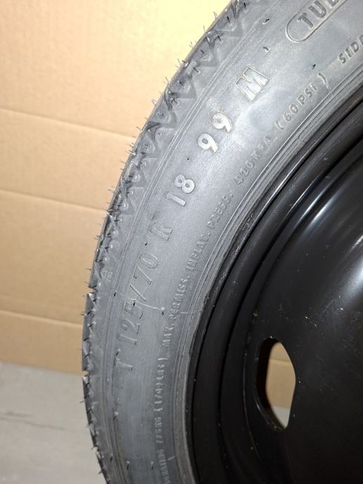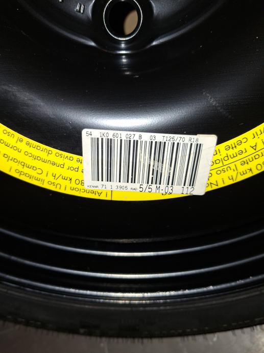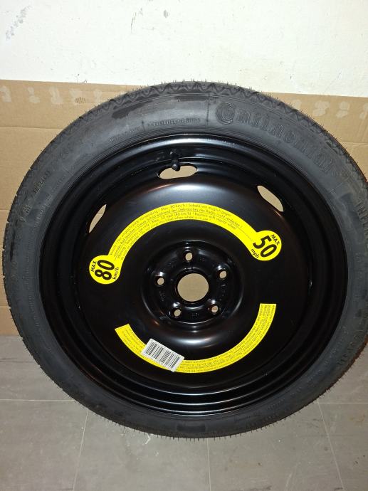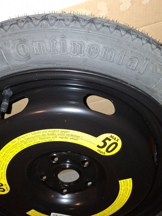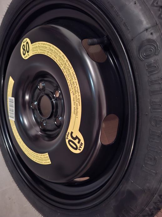 Rezervni kotac uski, 1K0601027, celicna felga, VW, Audi grupacija, golf 5,6, touran, jetta, A3, NOVO, continental guma, nikad koristeno, dim. 18" rupe 5x112 sa uloskom za dizalicu....