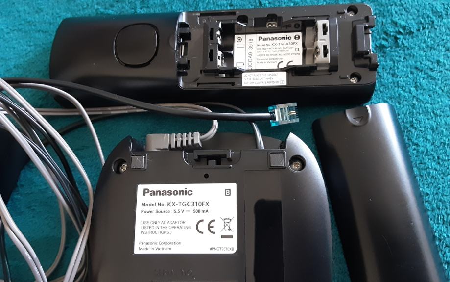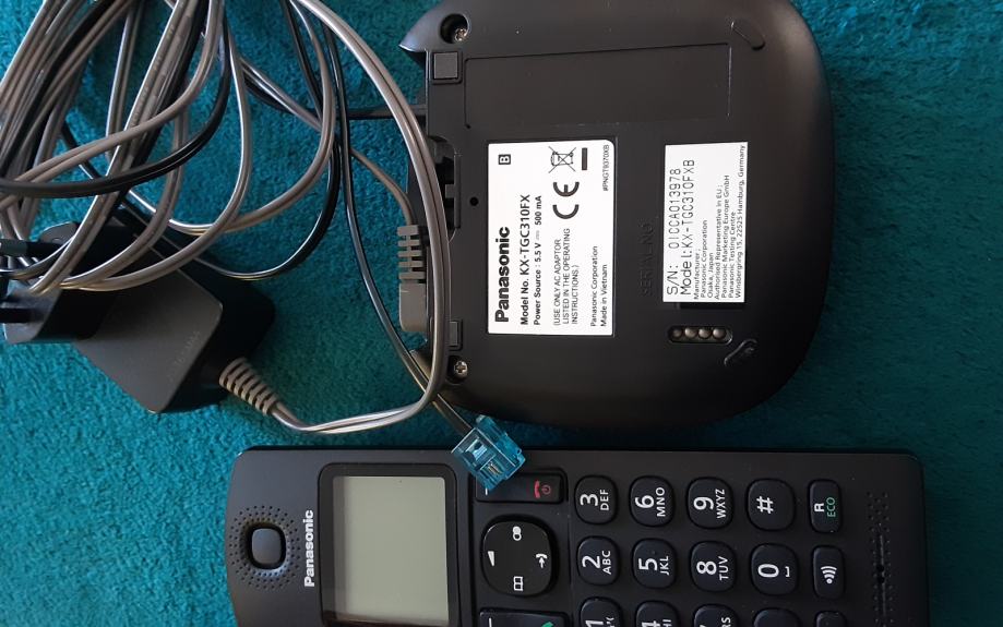 Panasonic fiksni/bežični telefon, crne boje, sa zvučnikom (sa baterijama), model no. KX-TGC310FX. Kupljen prije godinu dana, ispravan, nekorišten. Kao novi.