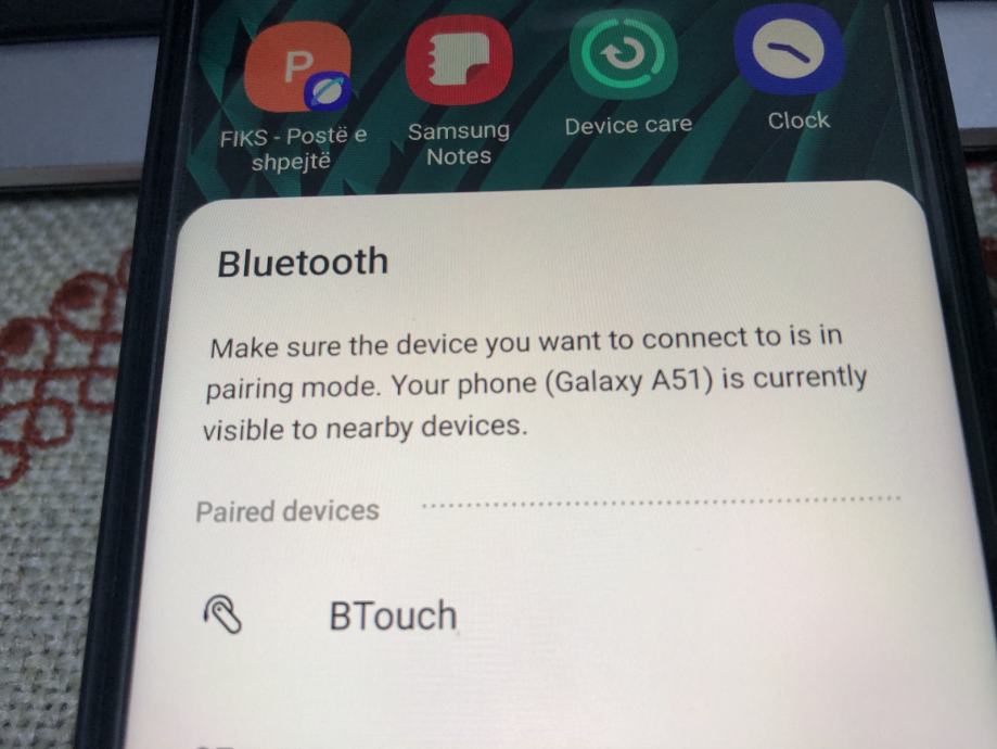 Fali mu baterija inace povezuje se sa mobilnim telefonom preko blutut