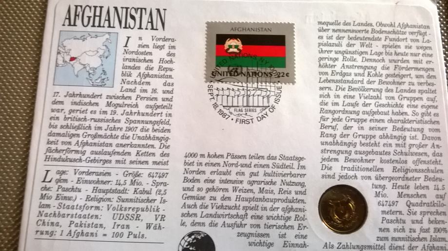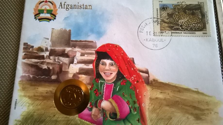 prodajem kuvertu Afganistana, serija katastrofe, talibani, sa 2 markice i kovanicom, pecat, rijetkost