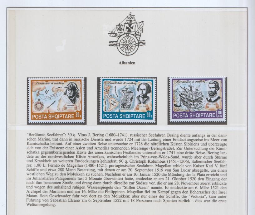 Albanija – “Poznati moreplovci” (Bering, Kolumbo, Magellan)