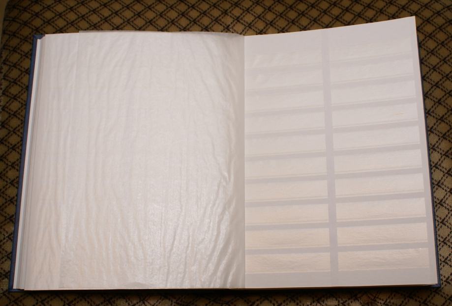 listovi bijele boje sa deset kolona za poštanske marke i prozirnim pergamentnim